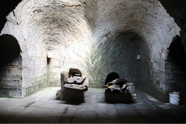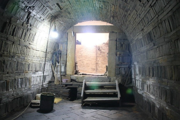 前室中部有对称分布的长方形耳室,均为券顶,进深约2.5米,内高约1.8米。