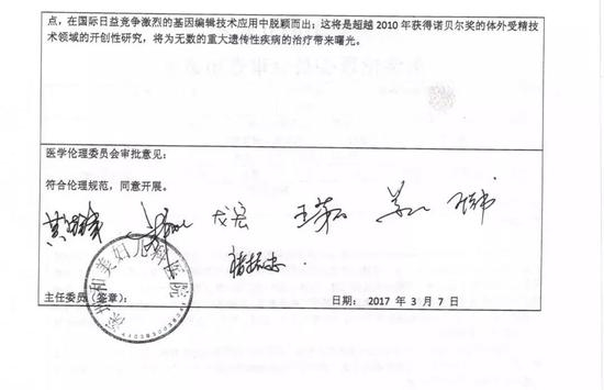 针对贺建奎与深圳和美的关系,程珍表示“没有关系”,但对于网上传出的盖有深圳和美医院印章的医学伦理委员会审查申请书,程珍表示“仍在调查中”。