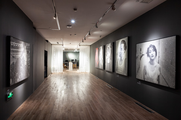罗素·杨:对,这是我刻意的。这一系列的色调其实是银色的,用了新的“钻石尘”的方式,“钻石尘”会粘在画面较暗的部分。我尝试了金色、黑白色,但是最后选择了现在这样。这是展览的最后一部分,我觉得观众看完整个展览可能已经眼花缭乱了,所以需要一种不同的心境,可以安静下来,因此我选择了银色。