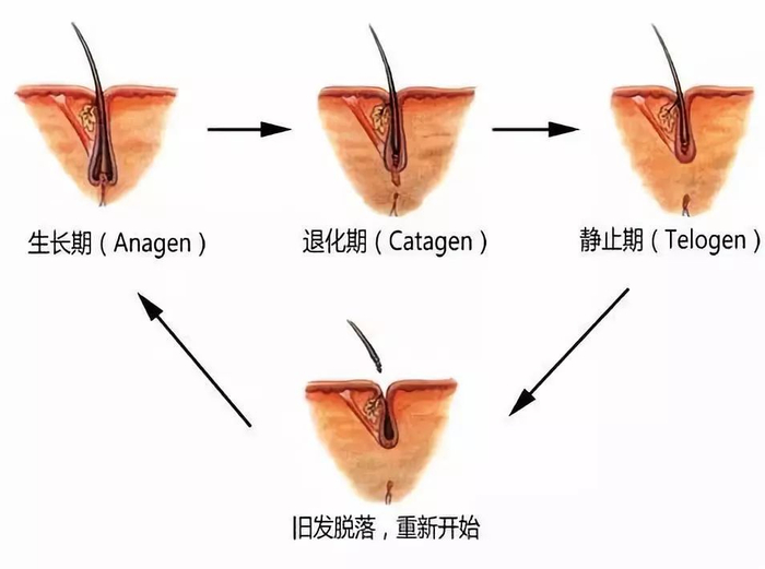 头发脱落后,另一根头发又从毛囊里形成,并且长出来