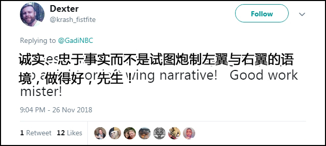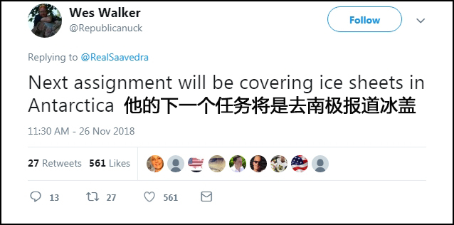 在11月26日播出的节目中,微软全国广播公司(MSNBC)记者加迪·施瓦茨(Gadi Schwartz)在墨西哥城市蒂华纳(Tijuana)采访了美墨边境移民“大篷车”(Caravan)安置营地,并与后方连线。