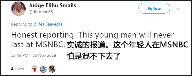 报道播出后,美国网友纷纷对赞赏施瓦茨不畏“政治正确”、“敢说真话”: