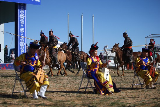 乌兰牧骑应邀参加苏尼特右旗的塔木沁快骥大赛开幕表演。