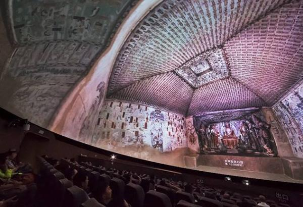 莫高窟数字展示中心以立体大屏幕展示部分洞窟壁画