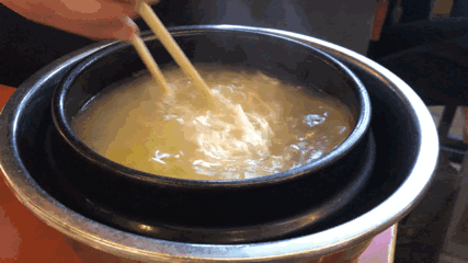 这家米线一天可以卖出四五百份,在铁路局做了5年了,吃他家米线前一定要先喝口汤再下菜,因为泛着自然金黄色的汤底,全是用鸡汤熬制。用配菜鸡肝、咸水鸭、酱香牛肉,就着刚在鸡汤里涮过的米线,淋上他家的秘制酱料、韩国泡菜,和没有麻精的自制麻油,滋味好到爆!第一次去,还可以获得服务员小哥哥亲自示范吃法哦~