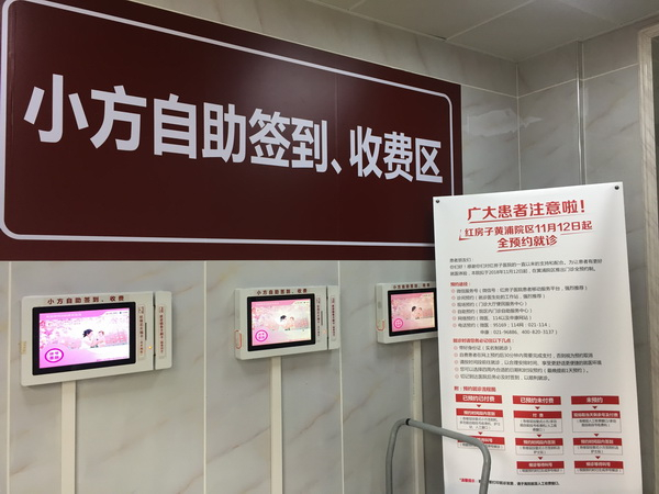 “患者预约成功后即可获得就诊当日序号,不需到窗口再次挂号取号,而是在付费‘签到’后,直接到候诊区等待。目前医院签到的途径有诊区服务台和自助服务机两种选择,可以刷医保卡或者自费卡实现挂号、付费等。”黄健表示。