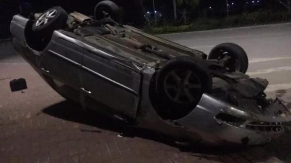 突然,路中间出现几个路障,陈某向右急打方向躲避,车差点撞到右侧路边。他又赶紧往左回方向,车辆一下失控撞到中间绿化带,翻到了对向车道上。
