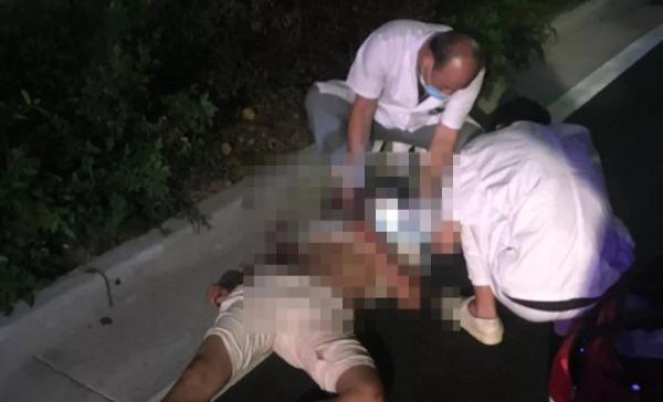 高栏港交警林警官迅速赶往报警地点,在途经南港路裕昌汽修厂路段时,林警官发现马路上有两个男子,其中一人(李某)头部受伤,躺在地上没有知觉。另一人(秦某)意识清醒,赤裸上身坐在路边。