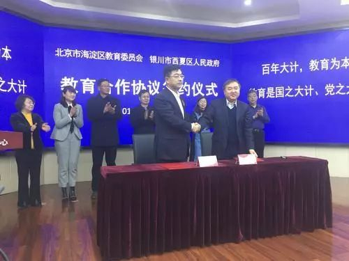 11月28日,在银川中关村创新创业中心,举行了北京海淀区教育委员会与西夏区政府教育合作签约仪式。