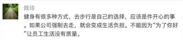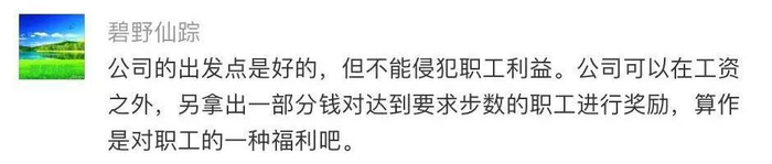 也有网友指出:这事的重点不在于每天走多少步数合理,而是公司能否以步数为依据惩罚员工。如果真的想起到鼓励运动的作用,与其惩罚没有完成指标的员工,不如反过来奖励超额完成的员工。