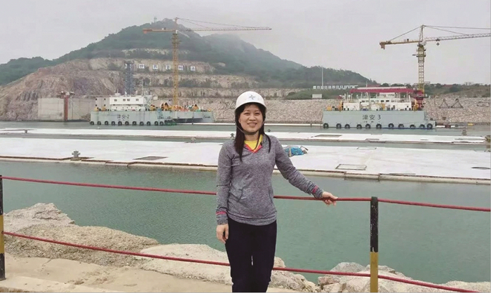 校友李英在港珠澳大桥施工现场(图源网络)。