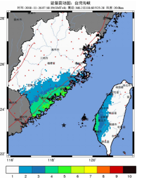 图2:台湾海峡6.2级地震震动能量分布图