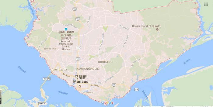 巴西玛瑙斯自贸区成立于1967年,位于远离沿海的西北内陆亚马逊腹地。玛瑙斯自贸区是拉丁美洲第一个自贸区,也是唯一的以贸易为主、兼营工农牧业和旅游业的综合型自由贸易区。自贸区通过实行特殊的政策,吸引外资、引进技术,发展成为巴西北部经济社会发展的龙头,也是拉美地区最大和最成功的自贸区之一。如今的玛瑙斯自贸区,已经跃升为全球两千多个自贸区中最为成功的前5名,成为南美区域经济发展最为成功的地区。根据图1所示,玛瑙斯自贸区位于内格罗河和亚马逊河交汇处,可以承载万吨级的货轮,提供了便利的航运条件。区内还有一处爱德华多·戈梅斯国际机场提供航空服务,将自贸区加工的产品以及转口货物销往外地。