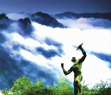 80多年前,为了修建它,2000多名工人奋战7个月,其中248人长眠于此,换来的是这条抗战大后方的生命线。后人为了纪念他们,在山麓一侧峰顶上立起了一座高3.5米的“开路先锋”铜像:一个壮硕的汉子双手举起,左手持钎,右手拿锤,昂首站立。