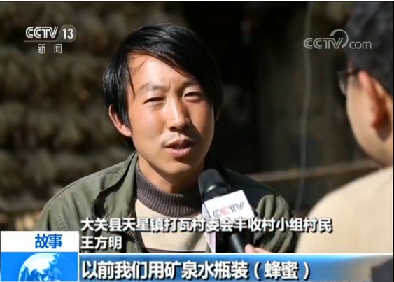 大关县天星镇打瓦村委会丰收村小组村民 王方明:去年总共一百零几斤蜂蜜,她全都帮我卖出去了。很快的时间就卖出了。总共14000多块钱。应该是最近几年最大的一笔收入了。
