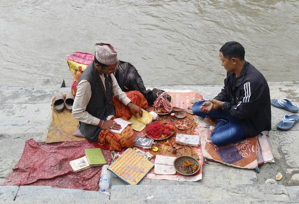 进行宗教仪式的尼泊尔人。