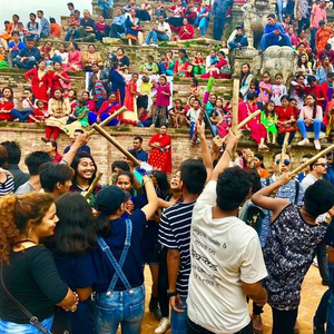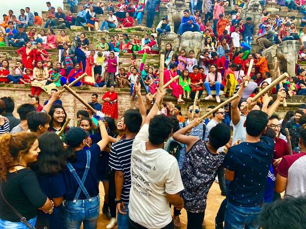 初到尼泊尔时,正赶上尼瓦尔族的神牛节。这一天,凡是过去一年内有亲人离世的家庭,必须派一个人扮装成牛参加节日的各种活动,人们相信,这样能使神牛为他们死去的亲人带路,早日顺利进入天国。在巴德岗杜巴广场,人们身着各式各样的节日服装参加游行,队伍从广场入口一直延伸到最里边,游行队伍还举着很多讽刺和揶揄当前政治人物的漫画,整个杜巴广场街道全部是拥挤的人群,很多年轻人带着短木棒相互敲击,一边舞蹈一边大喊,整个广场被狂欢的气氛所笼罩,尼泊尔人的快乐感染着所有人。