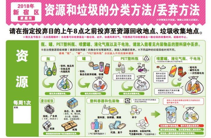 在此,以在东京市区23区中人口排名处于中位数的新宿区为例,来具体考察一下垃圾分类的实行。