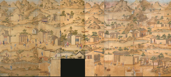该壁纸来自于英国英格兰东北部约克郡的一座一级历史保护建筑——夏活庄园大宅(Harewood House),它是夏活伯爵拉斯切利斯家族(Lascelles Family)的收藏。据文献记载,亨利·拉斯切利斯是东印度公司商船“约克号”的船长,曾在1741-1748年三次乘“约克号”到访广州,这套壁纸是亨利到访广州时订购的一件物品。该套壁纸虽每幅题材各有不同,但相连起来整个房间可以组成一组完整的水乡稻作、茶叶贸易的广州风土人情写实画面,是当时外销壁纸中的佳作。更为难能可贵的是这套壁纸的购买者及其当时所从事的商贸活动均有确切的文献记载,具有极高的史料价值。它是早期中英商贸文化交流的重要历史见证。