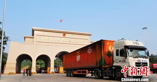 满载货物的汽车从友谊关口岸出境前往东盟国家。 庞立坚 摄