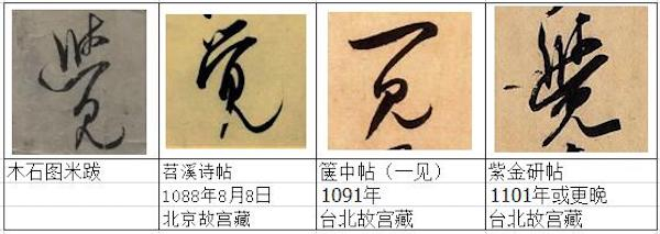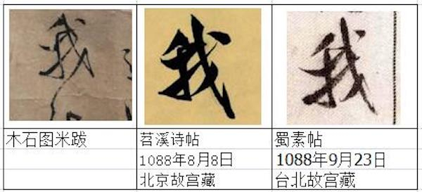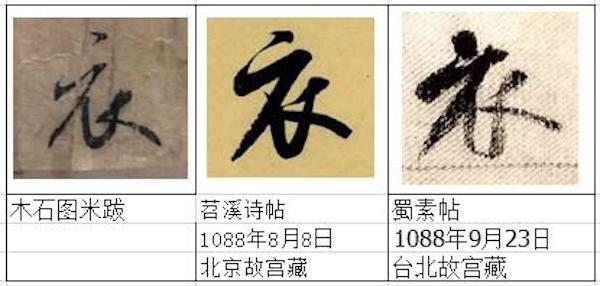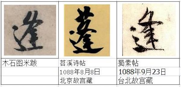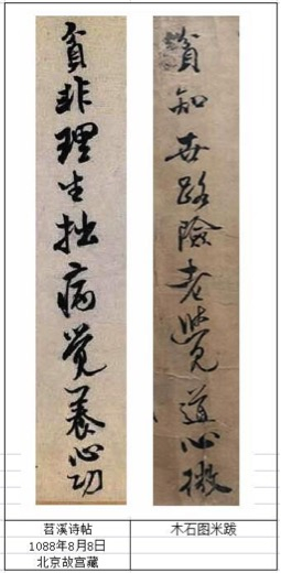 米跋总共才43个字,但是仅仅从《苕溪诗帖》、《蜀素帖》两帖之中就找到了米跋中的20几个字,占一半多。