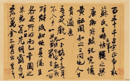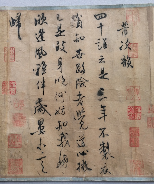 根据以上史料记载我们可以知道米芾其实出身于小官宦之家,自己17岁随母入京都汴梁后也一直在各地为官致仕至终老,生活不但不清贫,还是相当富裕的。怎么会“三年不制衣”,他的生活经历也不会写出“贫知世路险”的诗句,而他狂放不羁的性格在他四十岁左右的年龄也不应该会有“老觉道心微”的感慨。他不仅“往来无白丁,谈笑有鸿儒”,更有权贵交往,比如宋徽宗、蔡京等。他的一生阅历,根本不涉及到:“贫、世路险”,四十不惑而已,更不会“老觉道心微”,所有这些,笔者认为米跋除了文不对题之外,或与历史固有事实不符。
