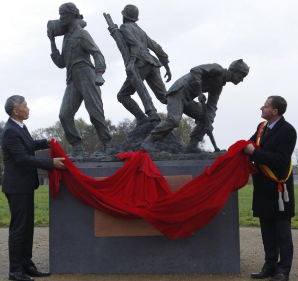 原标题:铭记历史 一战赴法华工雕像在法国落成
