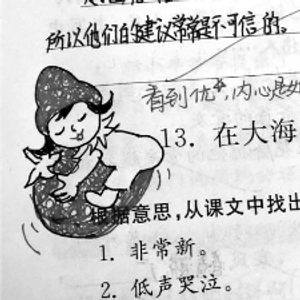 记者看到,一本本语文作业或数学作业上,老师的评语不再是“优”“良”“√”“×”,取而代之的是一幅幅充满创意的简笔画,再配上老师的暖心话语。