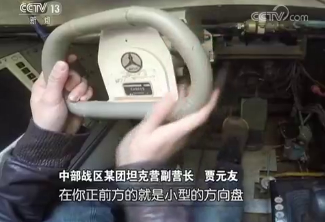 在驾驶室里,贾元友谈到了99A坦克的机动性能,他带领主持人进入99驾驶员位置, 参观了99A坦克内部的驾驶席,手自一体变速箱和小方向盘,他打了一个通俗的比方: