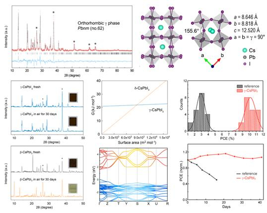 图4. 室温热力学稳定的正交光伏相g-CsPbI3薄膜及全无机钙钛矿太阳能电池