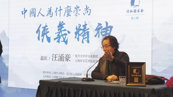 12月1日,复旦大学中文系教授汪涌豪做客宝山区行知读书会,开讲“中国人为什么崇尚侠义精神”。