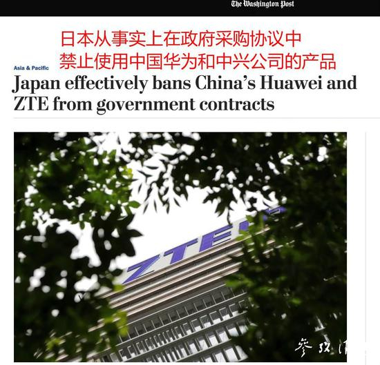 日媒报道称,日本政府12月10日在首相官邸召开会议,讨论出台新的政府采购相关规定。日媒认为,会议决定事实上将两大中国通信巨头华为和中兴的产品排除在政府采购清单之外。