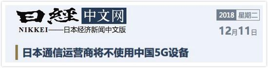 日媒称,日本将在2019年启动5G服务的试点。虽然此次日本官方并未限制民营企业采购中国的通信设备,但在5G投资决策临近的背景下,各通信运营商忙着避免采用将来可能受到限制的中国产品。