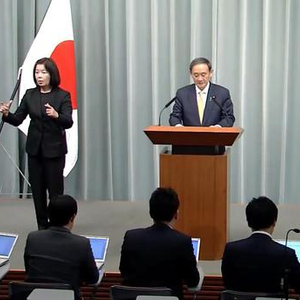 (菅义伟在记者会上讲话,全日本新闻网报道截图。)