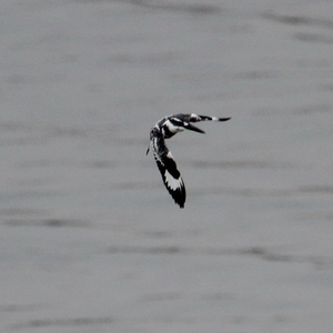 当时,这对黑白相间的鸟儿在三汊河的水面上飞舞时,居然还能上演瞬间定格的画面,猛然一看,俨然一副天然的中国风水墨画。据这位观鸟人士介绍,起初他注意到了多只夜鹭鸟,突然发现河面上有两只长着黑白羽毛、体型跟翠鸟相似的水鸟,于是特别留意。发现这种特别的鸟儿还是捕捉鱼儿高手,一旦发现目标如箭一标扎入水中,一条鱼儿就啄在嘴中。