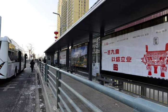 在83块灯箱宣传牌内,公益宣传比例达到100%,20余种公益宣传画面和20余种区域旅游宣传图进行撘配悬挂,以便乘客在候车间隙浏览阅读。