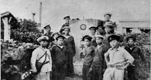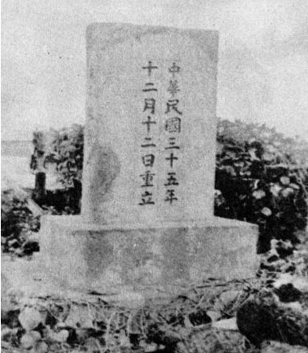 1946年12月,中国政府官员及海军官兵接收南沙群岛时在太平岛上摄影纪念,并竖立石碑,重申主权。