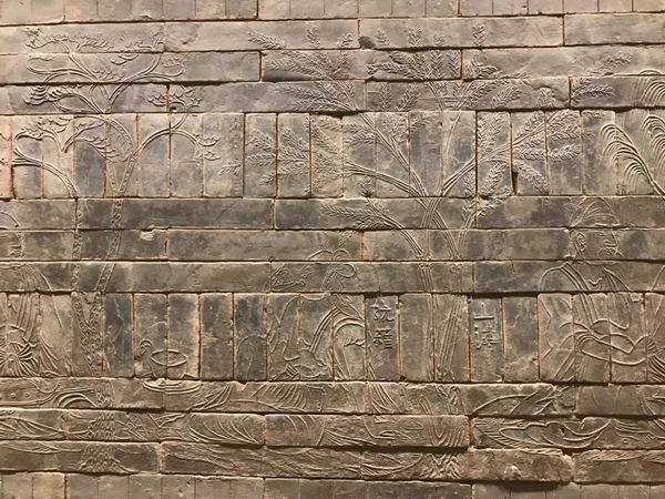 《竹林七贤与荣启期》模印砖画(局部) 澎湃新闻记者摄于南京博物院