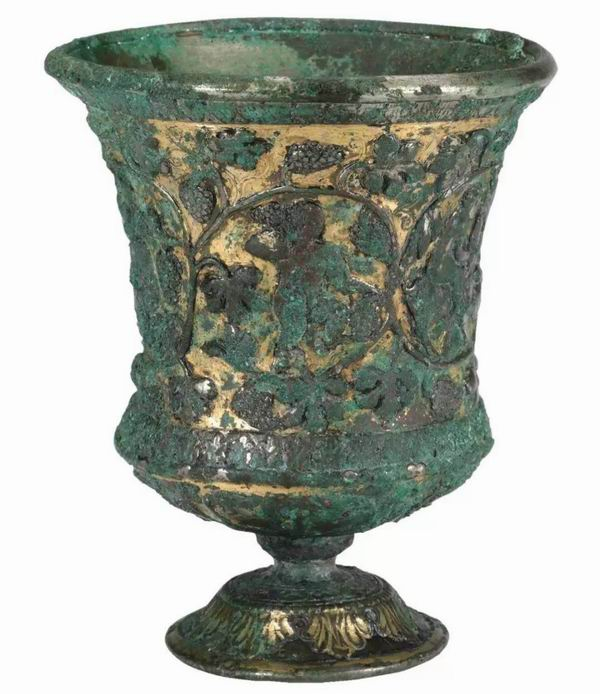 童子葡萄纹鎏金银高足杯 萨珊波斯帝国(5世纪) 山西博物院藏