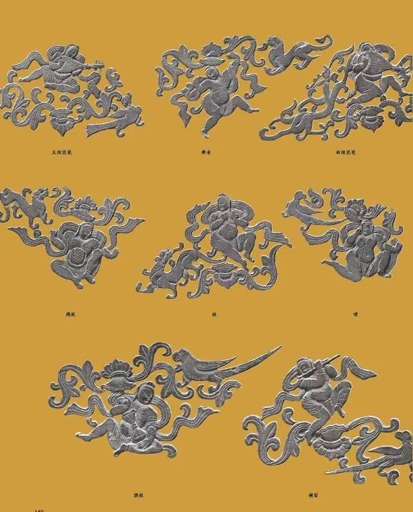 另外,出土文物中石雕品也颇为难得,其中石雕棺床其由六块浅灰色细砂岩石板构成。其上部和中间雕波状缠枝忍冬纹,其间刻画13个形态各异的伎乐童子和珍禽瑞兽形象。其下部三足间雕刻水波纹壶门,足部高浮雕四个力士形象、呈反手托举状,中间两个力士上部又浅浮雕一兽面,整体雕刻技艺颇为精湛。