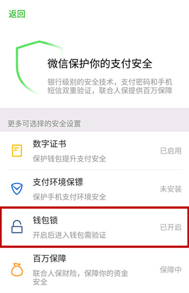 图说:设置钱包锁密码,可以最大限度地保障微信钱包中资金安全。手机截屏图