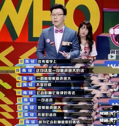 这一期结束后,陈铭可能夺冠的呼声逐渐蔓延。但陈铭认为,这并非事出偶然,实际上在第三季《奇葩说》里,陈铭也曾尝试过这个路数,当期辩题是“老婆的工资是我的三倍,我该不该跟她在一起?”陈铭一上来,展示了几篇中英论文,做了简单总结,没等总结完,马东就坐不住了,“我们不带这样的啊,玩辩论你……”言下之意很明显,打辩论不应该用考据,用学术做武器。陈铭认为马东的意思是不应当把学术的严谨带入节目。“我当时就也有点迷茫,啊那看来这个不能用太严谨的方式,还是要搞笑,可是怎么去搞笑呢?”
