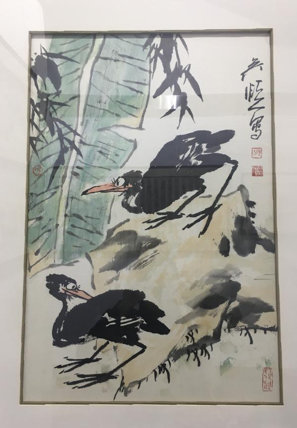 而位于富强街58号的吴颐人艺术世界则主要展出吴颐人先生的书画、篆刻、汉画、陶艺、瓷器等作品约120件。吴颐人师从钱君匋、钱瘦铁、罗福颐等前辈大师,研究书、画、篆刻五十余年,至今已有著作近三十种出版。年逾七旬的吴颐人坐在轮椅上亲自导览,诉说七宝故事与他的艺术理念。在吴颐人的作品中,仔细留意就会发现老师笔墨之下蕴藏着各种灵动的小生命,这也是他喜爱和平的表现。