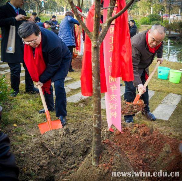 16日上午,“从珞珈山到乐山”纪念武汉大学西迁乐山80周年系列活动在乐山举行。与会领导与嘉宾先后参观了在武汉大学西迁旧址乐山文庙举办的“勉成国器”武汉大学西迁乐山80周年纪念主题展览、国立武汉大学西迁纪念碑、武汉大学西迁纪念堂,并在乐山师范学院樱花园种植海棠树和桂花树,为纪念树培土浇水,纪念两校的深厚情谊。
