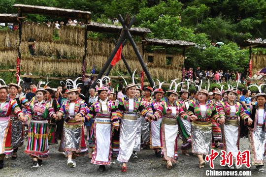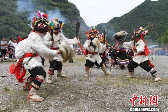 图为甘肃陇南文县白马藏族村落演绎传统舞蹈。(资料图) 杨艳敏 摄