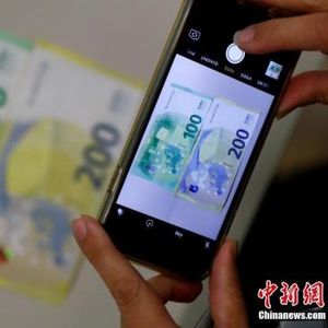 当地时间9月17日,位于德国法兰克福的欧洲央行总部相关负责人向媒体公开展示了新版100欧元和200欧元钞票,并展示了新钞的防伪特征。