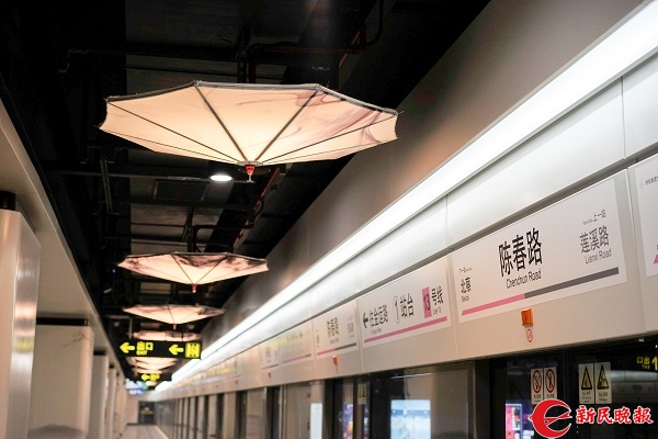 图说:陈春路站站台顶部采用类似纸伞的国风设计