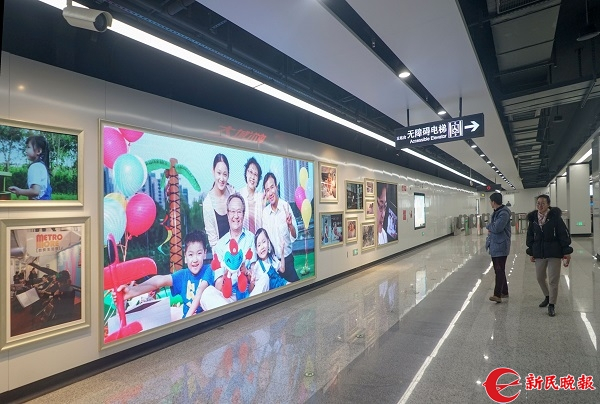 图说:华鹏路车站以微电影结合照片墙的手法,让每个经过的乘客瞬间就能感受浓浓的“大城小爱”