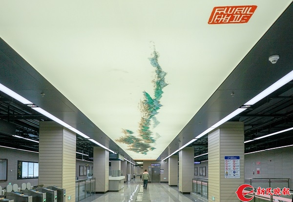 图说:长清路站站厅层天顶上绘制了《富春山居图》 新民晚报记者 陈梦泽摄(下同)