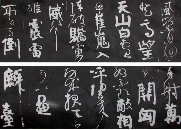 (传)苏轼《临争座位帖》(拓本,现藏于芝加哥菲尔德自然历史博物馆)本身的真伪尚成问题,学界一般都对此帖存疑。苏轼此帖属于意临,字体为行楷,间有草字,大小错综,粗细变化,无论结体与章法皆与颜真卿《争座位体》差异较大。倪著解决这一困惑的办法,是“祭出”颜真卿“非正统”的《裴将军诗》。学界对《裴将军诗》也是存疑的,此诗不载于《颜鲁公集》,北宋人从未评论过此作,直到南宋人楼钥(1137-1213)才有言及,首见于南宋留元刚《忠义堂帖》,所以苏轼是否寓目此帖还是问题。更何况苏轼临作与《裴将军诗》仍属两种路数,后者除了大小参差之外,还夹杂楷、草二体,方圆并峙,腾跳飞动,乖张奇杰,而前者字体统一,风格温和,故二者之间应该没有关联。倪著选择苏轼的疑作与颜真卿的疑作进行比较,作为学术研究实在是非常危险的。